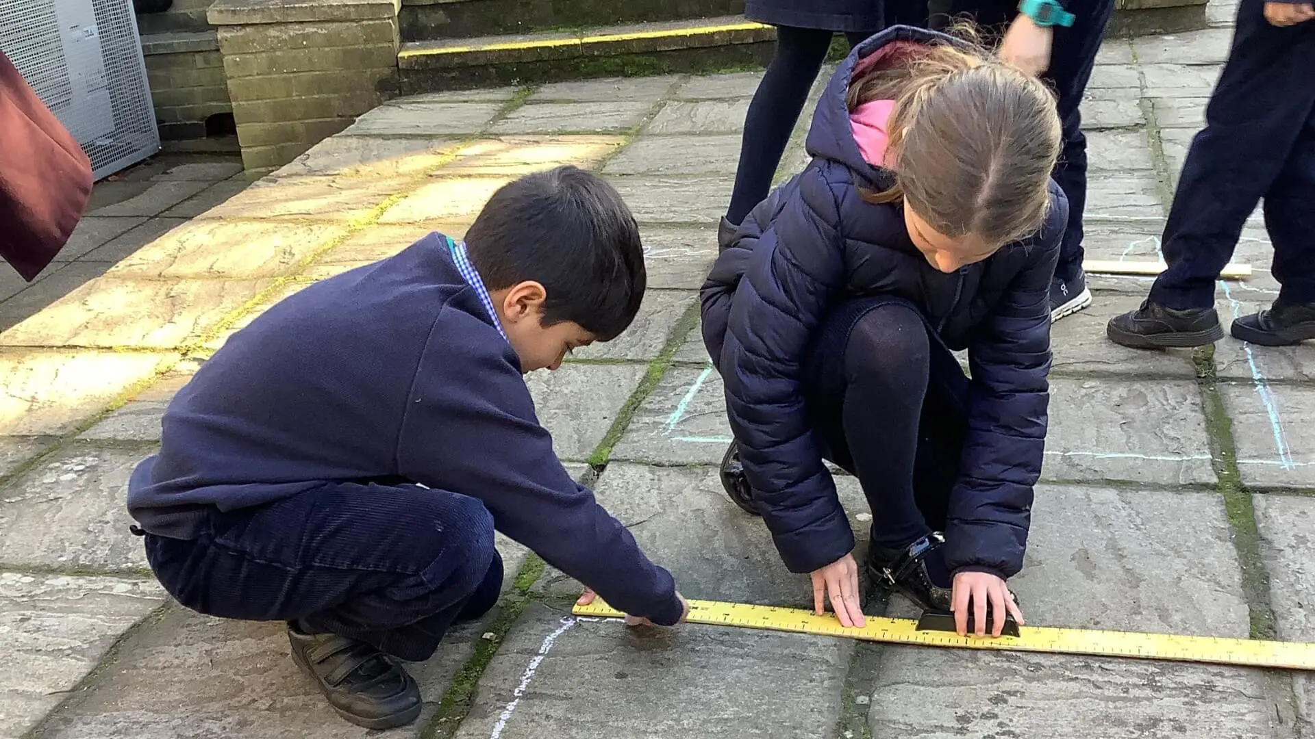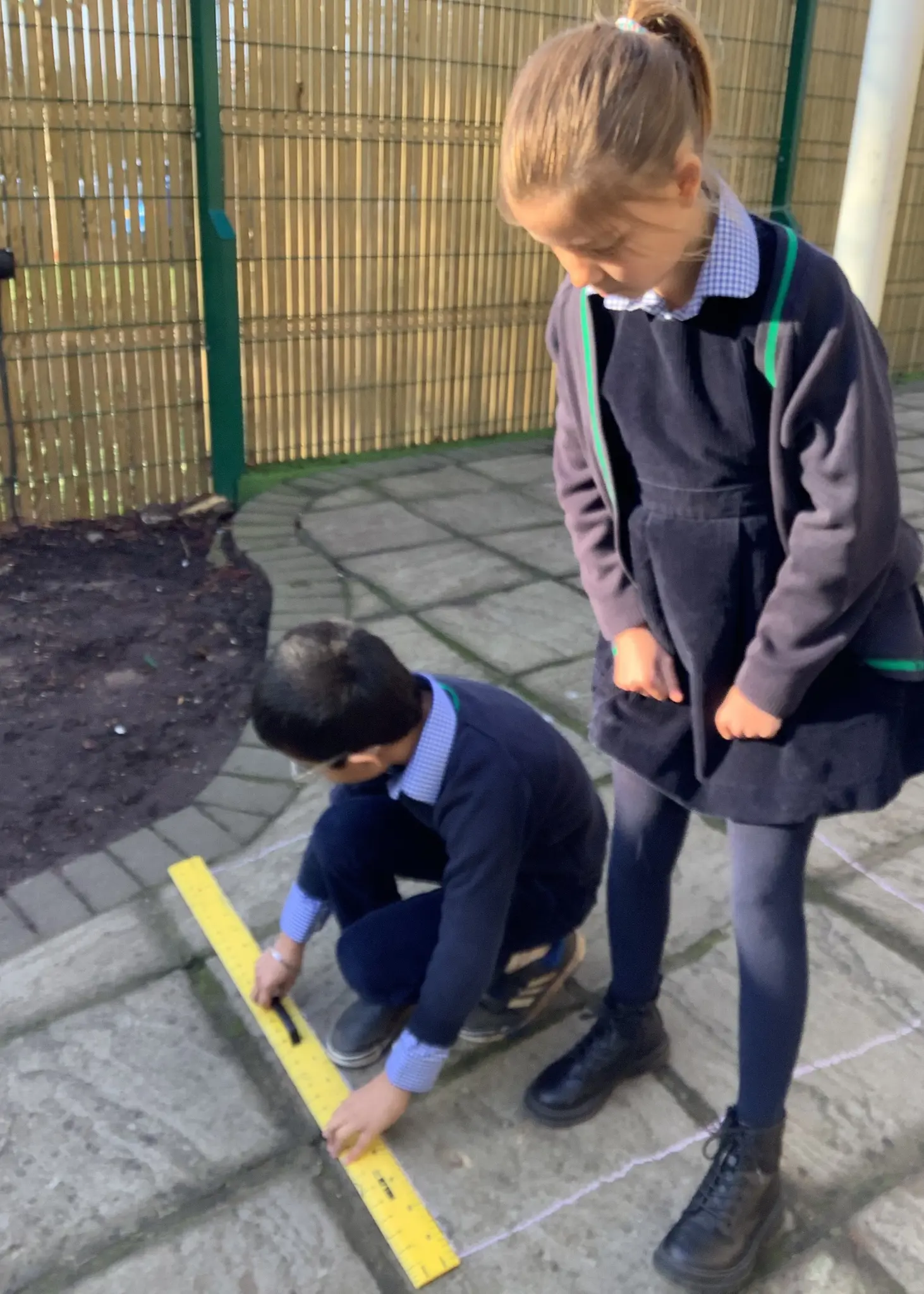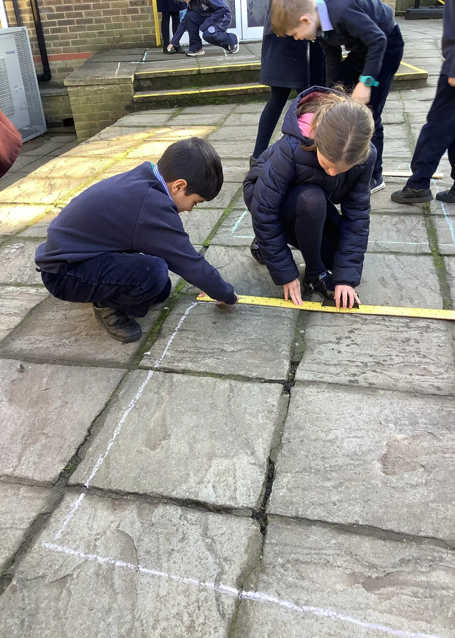 They drew out shapes outside using chalk, which helped them understand shape and size in a hands-on way. They practiced measuring distances in metres and converting these measurements into centimetres, developing their understanding of different units of measurement. Additionally, they learned how many metres are in a kilometre, making sense of large distances. It was a fun and active way for pupils to learn about measurement concepts while enjoying the outdoors!
